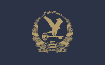 A dark blue flag with the emblem centered.