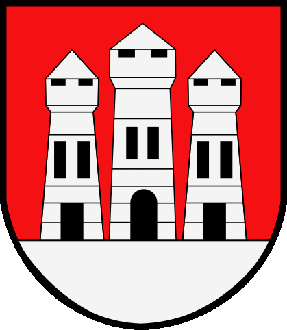 The more recent version of the coat of arms from the last century again shows three towers with irregularly