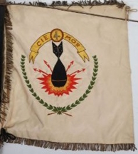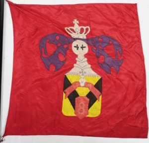 Multi-piece construction stitched double-sided flag with badge to centre with clips. size 80x75cms. Source: Source: candtauctions.co.uk