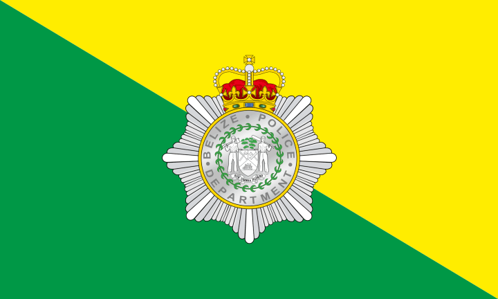 The flag of the Belize Police Department is diagonally divided, lower left part is green, and upper right part is yellow. The badge of Police is placed in the middle of the flag.