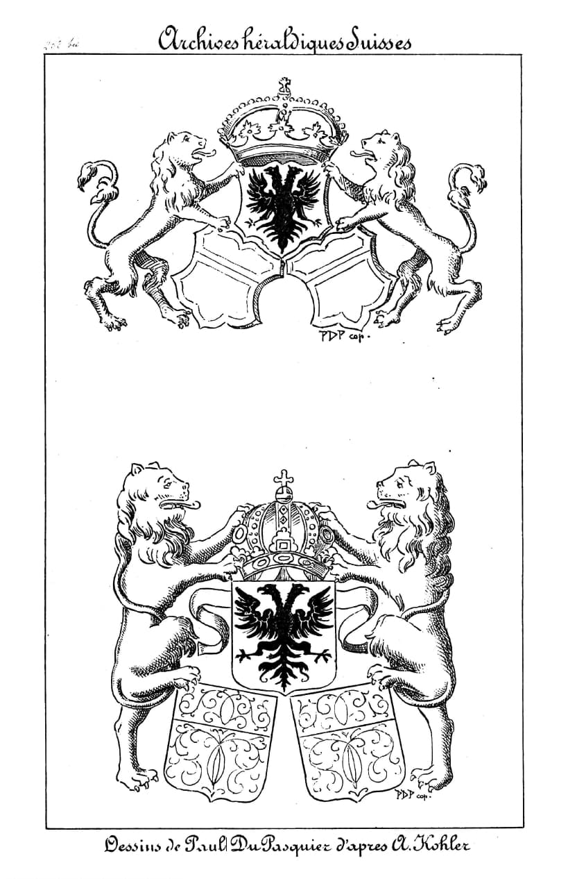 This flag could have a link to the city of Lausanne, Switzerland. The red part of the shield looks larger than the white, like Lausannes (gueules chappé d'argent in heraldic French), and the district of La Palud in Lausanne had the imperial eagle on its banner in medieval times.
