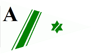 The white pennant was divided by a green, cotized bend sinister A green 6-point star was in the fly end. A probably black initial "A" was in the upper hoist corner.
