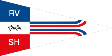 There are white inscriptions "RV" on blue filed and "SH" on red field and a rowing icon on the white field.