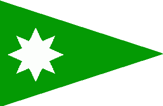 It is a white triangular pennant with a broad vertical light blue (FIAV-code B-) stripe at the hoist and a tawny 8-point-star in the centre of the flag.