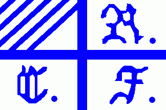The other quarters were charged with blue dotted initials in stylised font type as follows: "R."(upper fly), "C."(lower hoist) and "F."(lower fly).