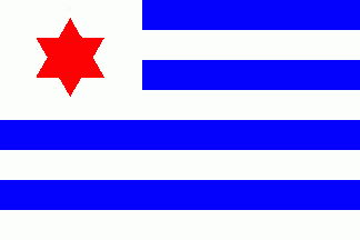 It was a 8-stripes flag horizontally divided by alternating blue and white stripes. On white canton was a red 6-point star.