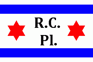"R.C." (1st line) "Pl." (2nd line), all between two blue horizontal stripes.