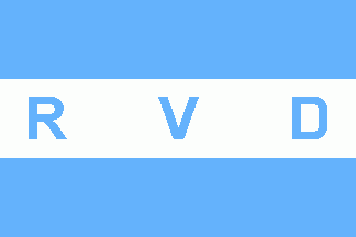 It is a blue-white-blue horizontal triband in celestial ,shade similar to flag of Argentina, with light blue inscription "RVD" on the white stripe.
