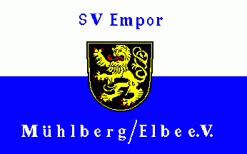 üSV Emporü on white stripe and üMühlberg / Elbe e.V.ü on blue stripe.