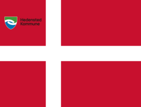The flag of Hedensted is vertical white-blue-white with the coat of arms in the middle.