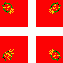 The colour was a red square flag parted by a centred white cross with crowned golden cyphers with inscription "F6" in every corner surrounded by a green wreath.