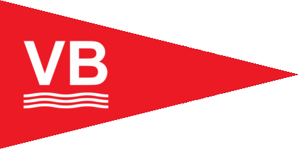 The pennant is red. At hoist are white initials "VB" over three white wavy lines.