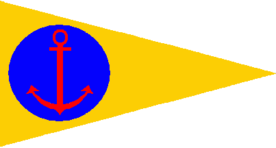 The pennant is dark yellow, shifted to hoist is a blue disc with a red anchor in ist centre. Te club is based in Glingøre.