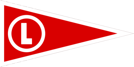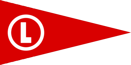 The pennant is red. Shifted to hoist is a white initial "L" in a white annulet. Sometimes the pennant is fimbriated white (see right image above).