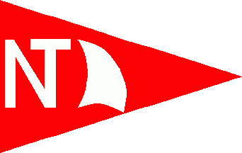 The pennant is red. Shifted to hoist is a white inscription "NT" with one horizontal bar in common and a white sail to fly.