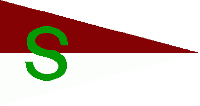 The pennant is horizontally divided of dark red (orlogsrød) over white. Over all is a green "S" shifted to hoist.