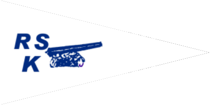 The pennant is white. At hoist is an inscription in blue italics "RS" over "K". On centre is a blue drake.