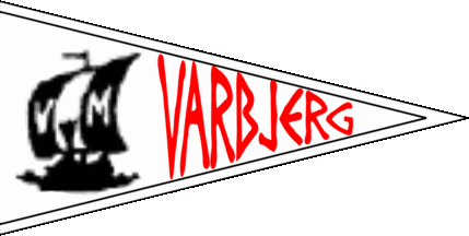 On hoist is a black viking ship with sail vertically parted black-white-black and white initials "VM".