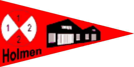 The 1st pennant (see left image above) is red with a black boat house at fly, a black inscription "Holmen"