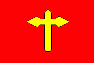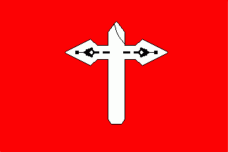 The flag was red with a white trefoil with its leaves having black centres (see left image above).
