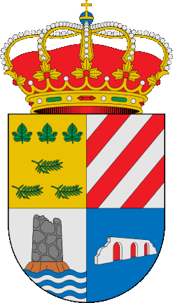 Meaning: The first and second quarters commemorate Ginés de Teruel, councilman of Lorca and ancestor, through his surname, of the first Count of Villa Amena de Cozbijar, Don Fernando Sánchez de Teruel y Quesada. The third quarter represents the Nasrid watchtower located in Cónchar, one of the two villages of Villamena, and the fourth quarter represents the aqueduct known as the Cijancos aqueduct, located in Cozvíjar, the municipal capital.