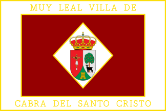 Meaning: The design is based on the flag of the Brotherhood of the Muleteers, a local confraternity founded in the mid-19th century. The red color represents the abundant red soil of the municipality; it also represents Úbeda, the city to which Cabra del Santo Cristo once belonged, and whose banner is also red. The ivory-white border of the flag represents the Sanctuary of the Holy Christ of Cabra, while the central diamond represents the town's patron saint, Our Lady of Expectation.