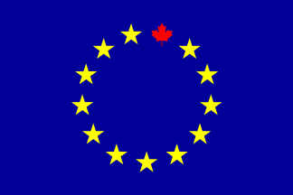 A cartoon by Andrea Ucini was published in The Economist on 2025.01.02 to illustrate article “Why Canada should join the EU”, shown at 00'52'' of this Deitsche Welle news segment aired on 2025.02.12: It shows an E.U. flag with a red maple leaf (taken from the Canadian national flag) added as a 13th symbol to the ring of stars, squeezed in at the quarter-past-noon position.