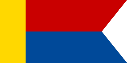 blue and swallow-tailed with a yellow vertical bar at the hoist: photo (2024), photo (2024), photo (undated), photo (2021), photo (2020), photo (2019).