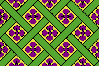 Or fretty vert, semy (in the spaces) of lilacs proper.