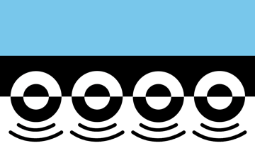 The flag comprises three horizontal bands: light blue (top), black (centre) and white (bottom). Light blue is the ancient heraldic colour of Ireland. It represents Digbeth's Irish heritage and also evokes the sky. In the black band are four white semi-circles, evoking the Victorian railway viaduct that cuts through Digbeth. The white band features four matching black semi-circles above black ripples, evoking the viaduct reflected in the local canals. The ripples also symbolise the river Rea, Birmingham’s birthplace, which now flows underground. In addition they represent audio speakers and music, reflecting Digbeth’s role as a hub of the modern urban arts scene.
