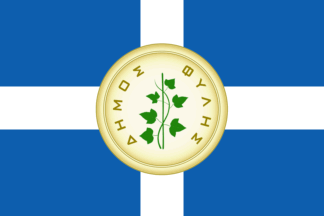 The flag of Fyli (photo, photo) is white with the municipal emblem (image).
