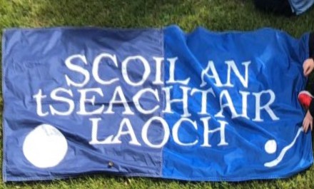 The flag with Scoil An tSeachtair Laoch on it has two shades of blue, given