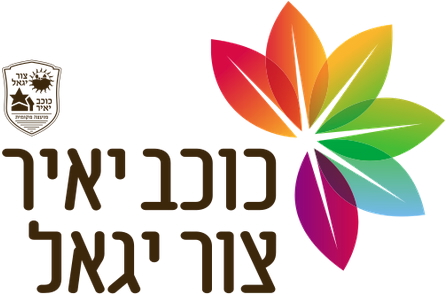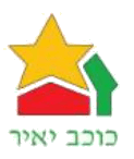 Keywords: kokhav ya'ir | zur yig'almo'atza mekomit kokhav ya'ir | text: hebrew (green) | star (yellow) | house (red) | tree (green) |