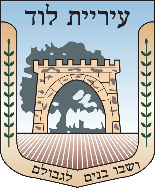 Keywords: lod | iriyat lod | coat of arms (city gate: white) | coat of arms (tree: fig) |