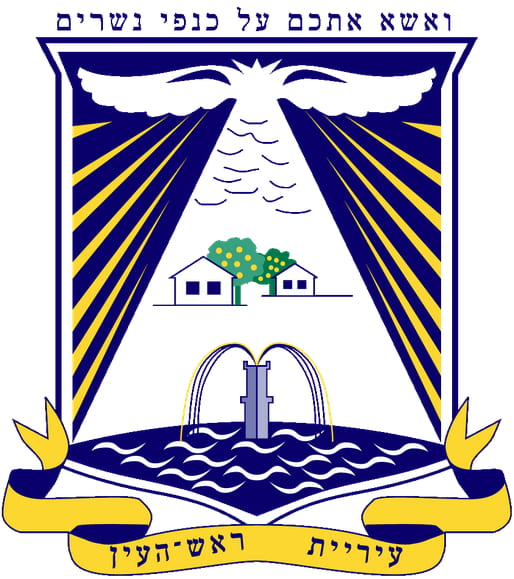 "The emblem of Rosh HaAyin reflects the springs of Rosh HaAyin, the new blooming of the community and a hint for the aliya [lit.: uphill, meaning: immigration to Israel] from Yemen.