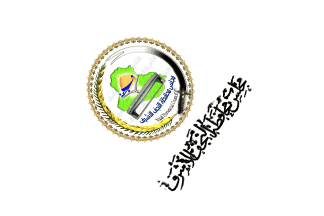 The flag depicts the logo with its name underneath it in stylized Arabic. The