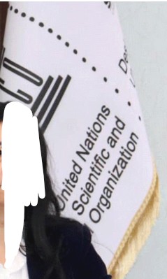 depicts a blue-and-white version of the UNESCO logo, reading underneath "unesco"
