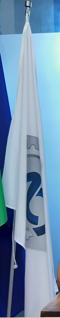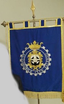sventola una bandiera blu con fascia tricolore e stemma del Reale Automobile