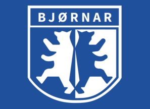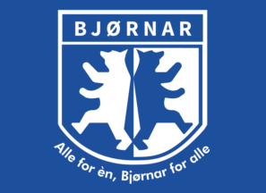 The flags of Bjørnar Håndball from Indre Arna in Bergen Municipality are blue or blue and white tribar with the badge centered.