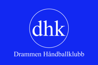 The flag of Drammen HK (Drammen Håndballklubb, DHK) from Drammen is blue with the badge centered above the name
