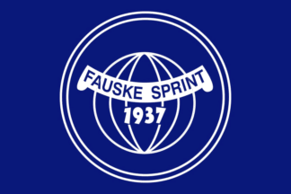 The flags of FK Fauske/Sprint (Fotballklubben Fauske/Sprint) from Fauske are dark blue with the badge centered.