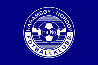The flag of HaNo FK (Haramsøy Nordøy Fotballklubb) from Austnes on Haramsøy island in Haram Municipality is blue with the badge centered.