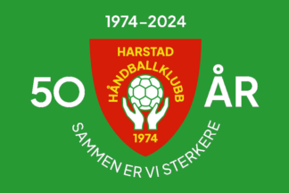 A 50th anniversary flag of Harstad HK (Harstad Håndballklubb) from Harstad, is