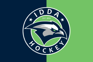 The flags of Idda Hockey (Idda Ishockeyklubb) from Kristiansand are blue and green, as a bicolor or chequered, with the badge centered.