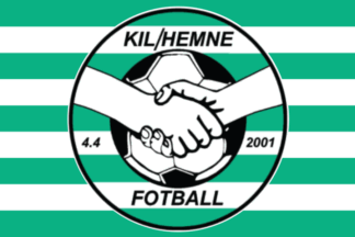 flag of KIL/Hemne (KIL/Hemne Fotball) from Kyrksæterøra in Heim Municipality is horizontally striped green and white with the badge in the center.