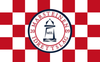 The flag of Marsteinen IL (Marsteinen Idrettslag) from Klokkarvik in Øygarden Municipality is chequered white and red with the badge centered.