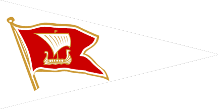 The flag of Sandefjord Seilforening from Sandefjord is blue with a thin blue-white border, the name in white and a red flag showing a Viking longship.