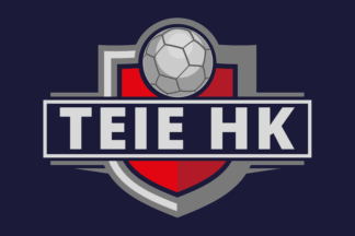 The flag of Teie HK (Teie Håndballklubb) from Teie in Færder Municipality are blue with the badge centered.