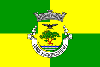 Mural crown Argent with three visible towers (village rank) and white scroll with inscription in black capitals "CEDROS - SANTA CRUZ DAS FLORES".
