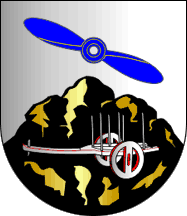 The symbolism of these arms pertains to local orography and history of transportantion; the propeller namely refers to the local airfield,